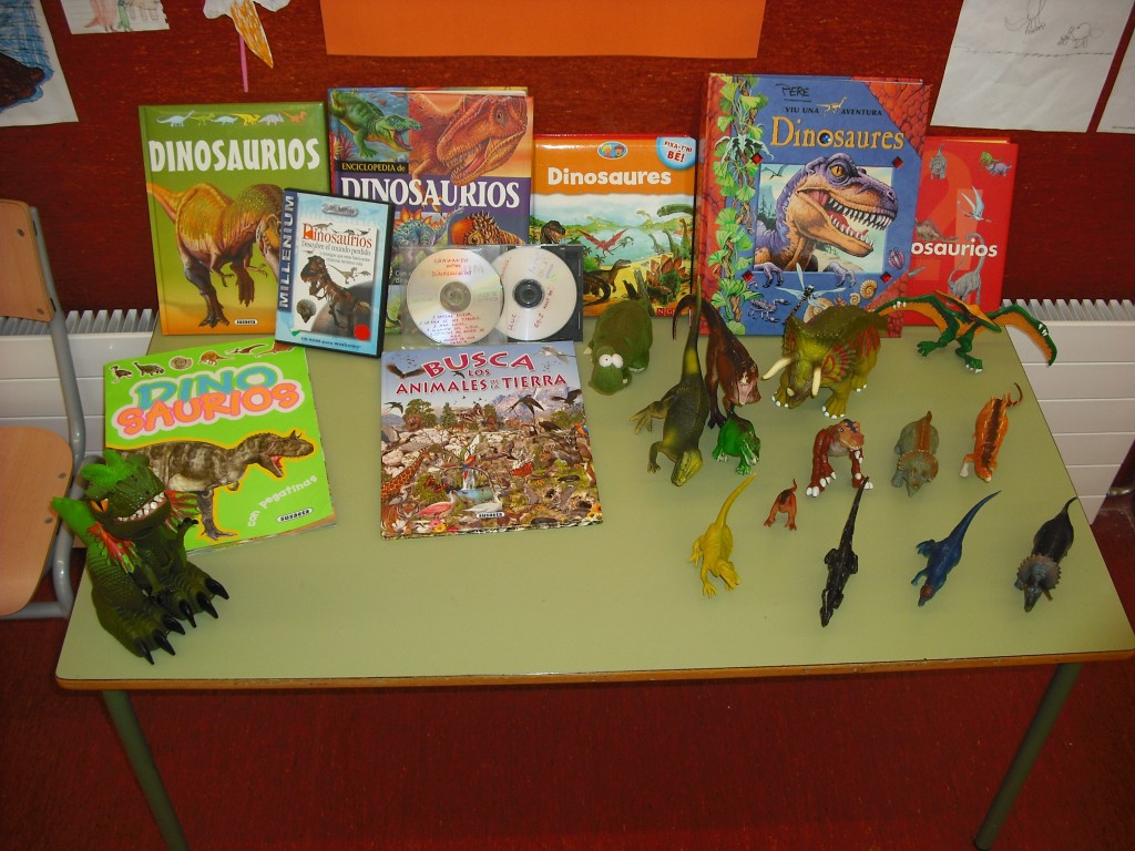 Per investigar i aprendre moltes coses dels dinosaures, hem portat moltes coses sobre dinosaures: llibres, joguines, vídeos, jocs, dibuixos, etc.