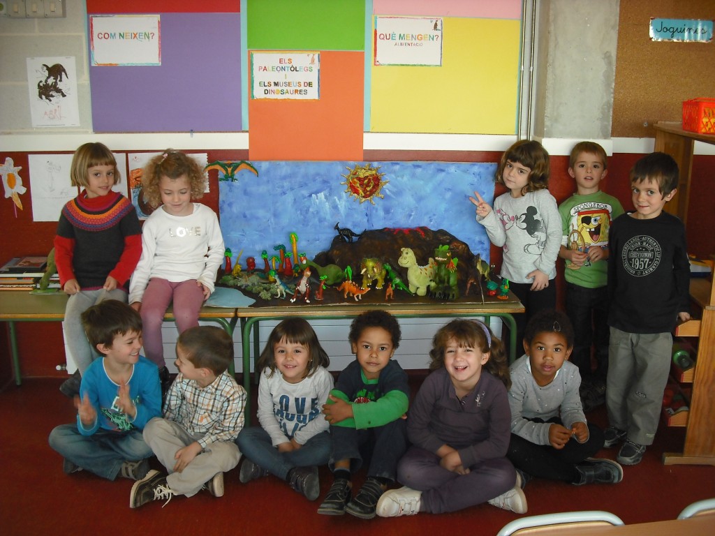 Per això hem investigat i hem descobert moltes coses sobre els llocs ON VIVIEN ELS DINOSAURES. Primer, hem mirat els llibres que havíem portat de casa i hem buscat imatges dels llocs on vivien els dinosaures. Després hem parlat sobre que existia i que no a l’època dels dinosaures i finalment hem decicidit entre tots que volíem posar a la maqueta que serà la casa dels dinosaures: muntanyes, un volcà, un llac, arbres, herba, el sol…