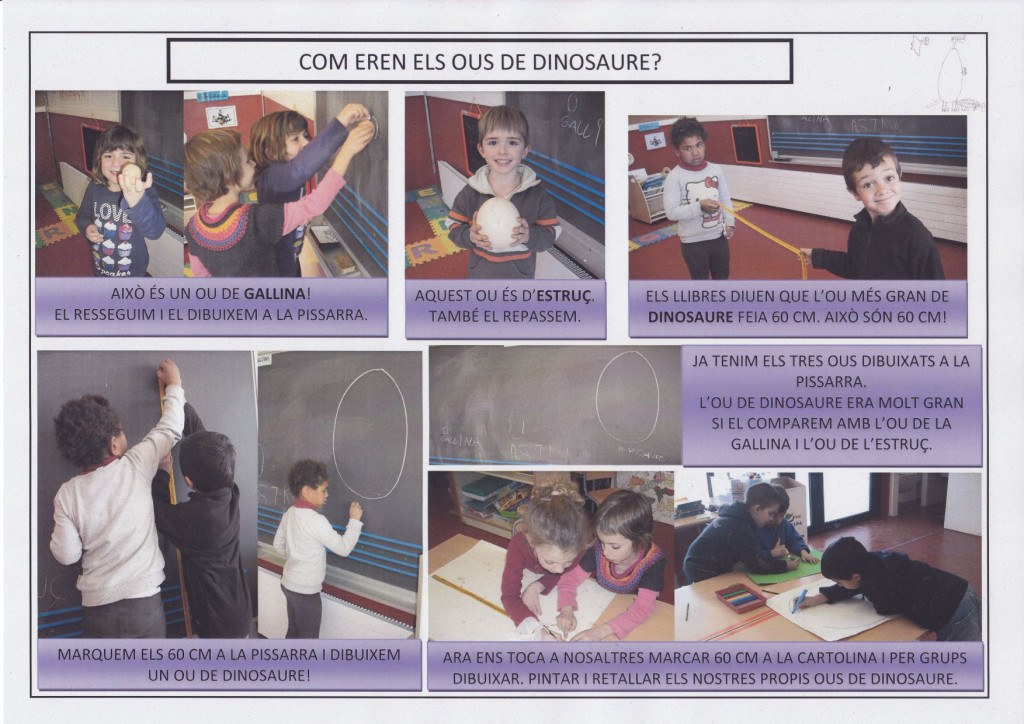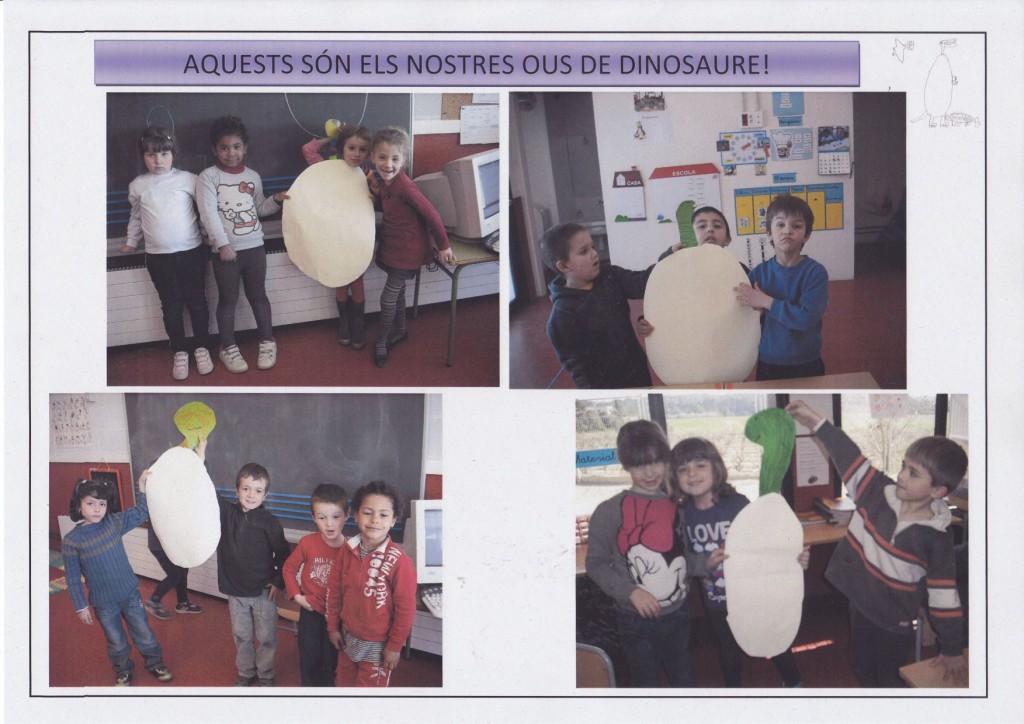 Hem pogut veure com és un ou de gallina i un ou d’estruç, però ens hem hagut d’imaginar com eren els de dinosaure. Per grups hem fet ous de dinosaure, ens han quedat superbé!