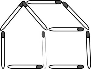 Construeix una casa com la figura. Heu de canviar 2 escuradents per tal que la casa aparegui a l’altre costat.