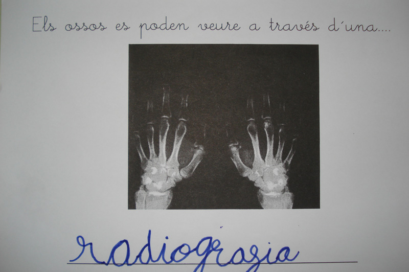 Per poder veure els ossos del nostre propi cos vem portar de casa unes fotografies que et fan quan vas al metge i es veuen els ossos. Es diuen RADIOGRAFIES. Amb això es pot saber si tenim un os trencat.