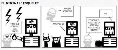 Una vegada en un castell hi vivia molta gent fins que un dia va arribar un drac. El drac es va anar menjant bous porquets… Més lluny un noi que es deia Sant Jordi sempre somiava fer lluites. Un dia li va dir al ferrer que li fes una armadura i una espasa i a l’estable va agafar el cavall més bonic. En mitja del camí va veure una lluita i ell va lluitar. Al final van guanyar i els companys de la lluita els van oferir que es quedés a dormir. Al dia següent va arribar a la cova del drac va veure que el drac s’anava a menjar a la princesa però Sant Jordi li va clavar la llança i de la sang van sortir roses moltes, moltes roses i Sant Jordi li va regalar una rosa a la princesa i li va dir – casat amb mi !!!! . D’acord va dir la princesa i al final van ser feliços per sempre.