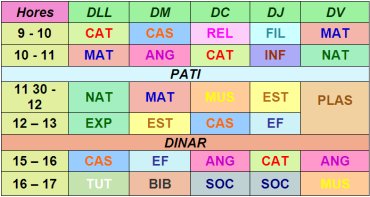 El meu horari de 6è A
