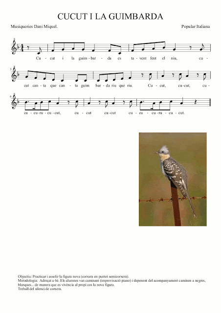 Cucut i la guimbarda cantaven fent el niu cucut canta que canta guimbarda riu que riu. Cucut cucut cantava fent el niu cucut canta que canta guimbarda riu…