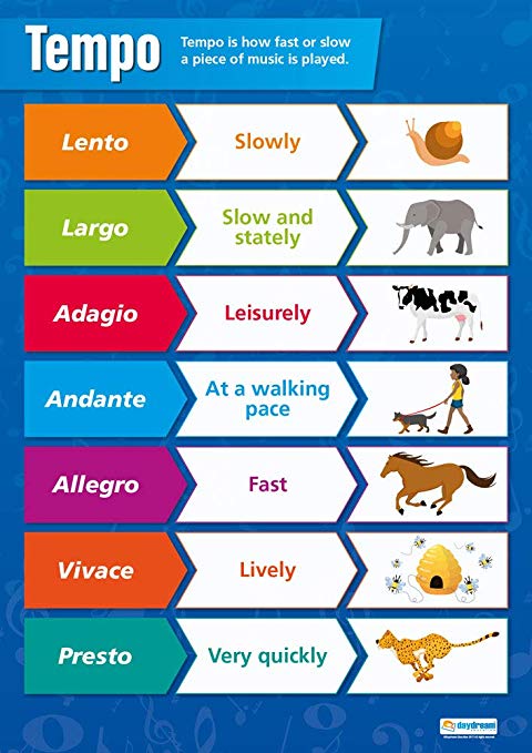Avui parlarem del TEMPO o MOVIMENT i dels signes musicals que utilitzem per expressar-lo… Molt lent és un tempo molt pausat i tranquil. S’anomena ADAGIO que significa lentament…