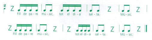 Amb les mans pots repicar XX (bis) I amb ‘els’ dits’ dos tocs” (bis) I si vols cridar ben fort, només cal fer-ho així, ei! (bis) Audio