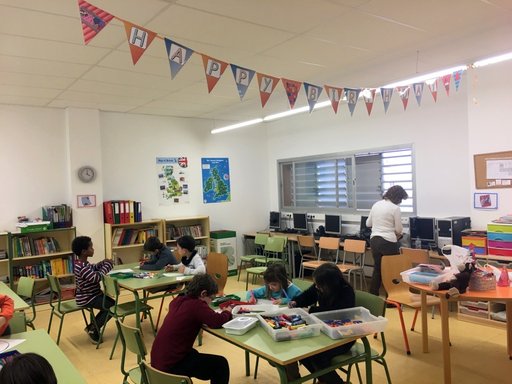 This time the classroom has been decorated as if it were a real birthday party. First, the students perform, all together, an introductory activity consisting in representing different emotions using gestures and facial expressions. Then, using various visual elements such as pictures, posters and objects related to birthday parties (candles, balloons, paper cake, etc.), students act out a short adapted dialogue in pairs, which represents a fun and unusual scene that takes place at the birthday party. The final proposal is to create a small party hat.