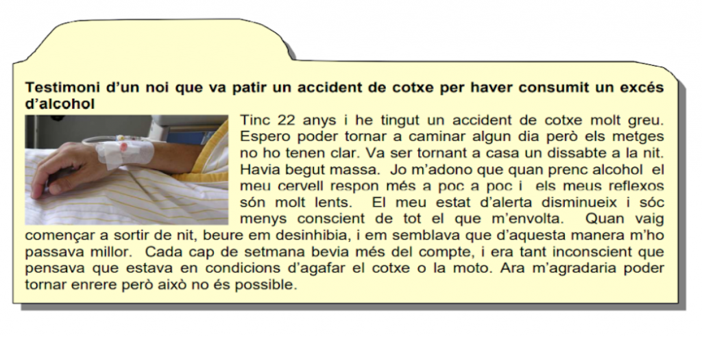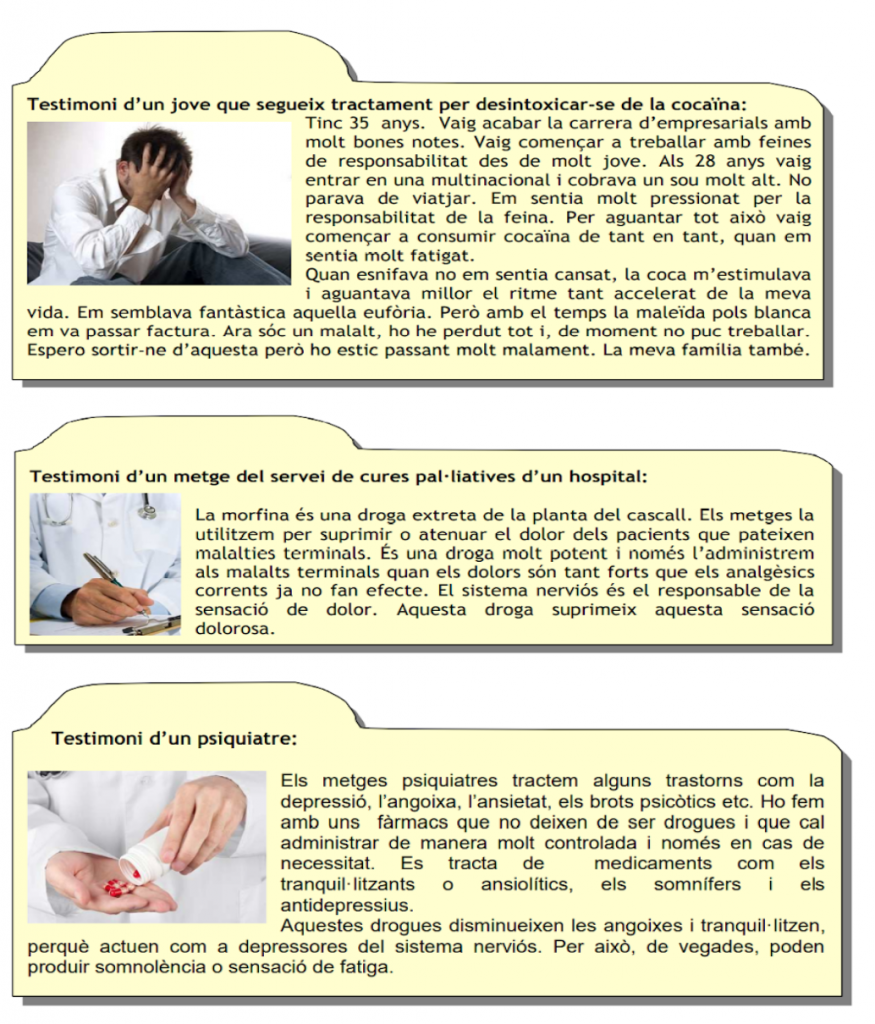 A continuació tenim diferents testimonis de gent que ha patit els efectes de les drogues en el seu propi cos. Anem a llegir entre tots aquestes descripcions.