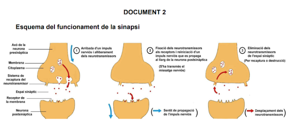 - Explicació de com es du a terme una sinapsi. Per tal de que pugueu fer memòria del que ja hem treballat anteriorment, us deixem aquesta infografia que explica detalladament els passos que es duen a terme en una sinapsi sense cap afectació.