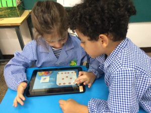 En aquest ambient els nens i nenes poden jugar amb un company/a a les diferents aplicacions que troben a les tauletes digitals o als ordinadors. La metodologia que és dur a terme  és totalment pràctica i cooperativa.  En cada tauleta digital o ordinador estan dos alumnes un de P5 i un de P4 (així poden treballar en petits grups, ajudar-se, explicar-se coses i interactuar entre ells). Els programes com el Jclic, el Powerpoint, el word i les aplicacions que troben a les tauletes digitals són activitats molt diverses, motivadores i tenen en compte els diferents graus de dificultat. És a dir, no tots els infants fan el mateix, cada petit grup segueix ritme d’aprenentatge. Com ja hem comentat, juguen de dos en dos, ja que quan un no sap fer una cosa, el company el pot ajudar, d’aquesta manera es generen aprenentatges més significatius pels nostres alumnes.