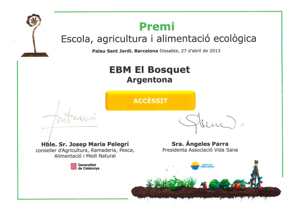 Premi “Escola, agricultura i alimentació ecològica”