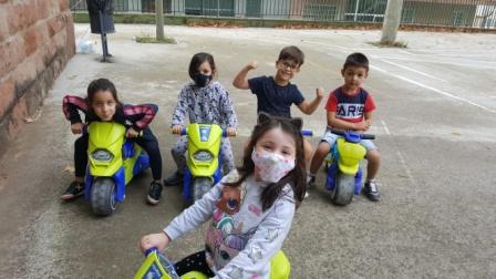 Aquest curs hem dividit el pati d’infantil en tres espais de joc un per cada curs d’infantil. Aquests espais són rotatius i alumnes canvien cada setmana. A cada un d’ells i materials i possibiitats de jocs diferents: sorral amb material de cuineta, carretons, motos, construccions, camions, pales, galledes i construccions de fusta. a cada espai podem experimentar amb el material corresponent sobretot gaudir i compartir amb els nostres companys i companyes de classe. Fotos P5