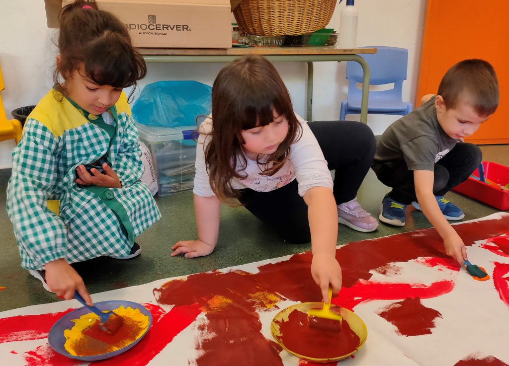 Fem un mural tots junts pintant amb corrons i esponges … Amb els colors de la tardor!