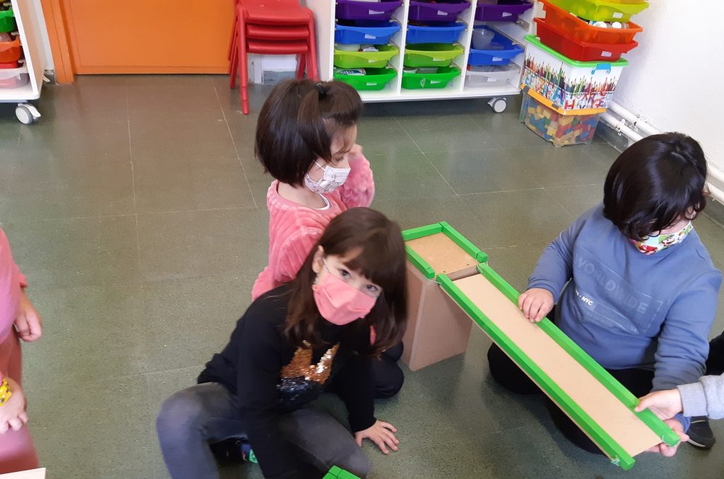 Els lleons i les lleones hem anat a l’aula d’experimentació i hem construït rampes de diferents alçades i pendents. Després hem fet hipòtesis amb diferents objectes per veure quin baixaria abans i hem pogut comprovar que com menys pendent té la rampa més fàcil és veure quin arriba abans perquè corren poc i que com més pronunciada més de pressa baixen. FOTOS