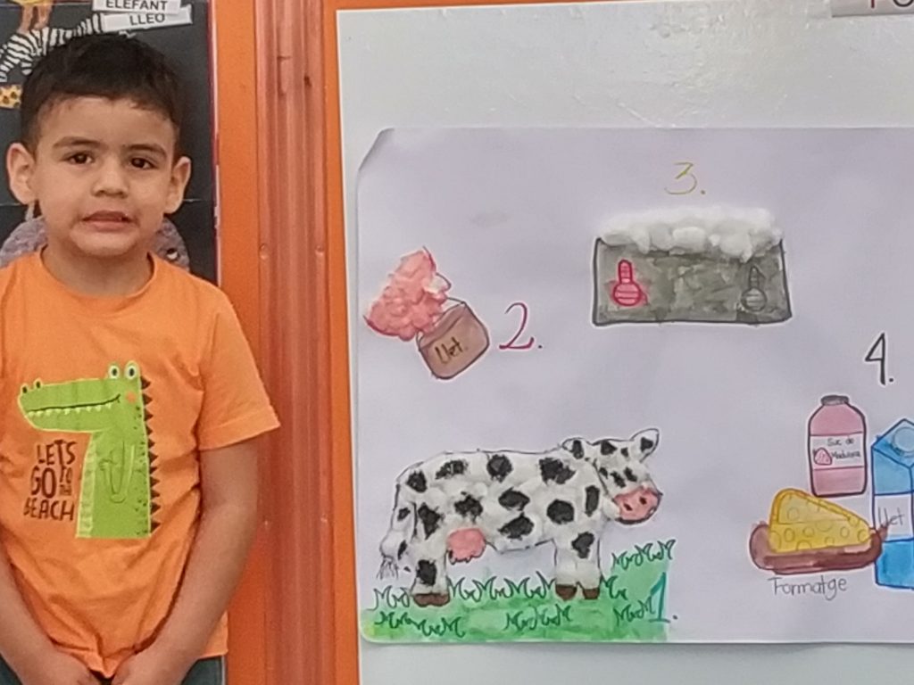 Durant aquest trimestre, els nens i nenes de la classe de la LLUNA , hem treballat els animals de la granja i això ens ha servit per triar l’animal que volien treballar amb més profunditat; Desprès de fer una votació, l’animal triat va ser la VACA; Hem après que menjant, de què colors són les vaques, on viuen… FOTOS