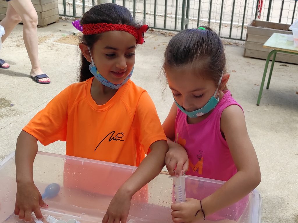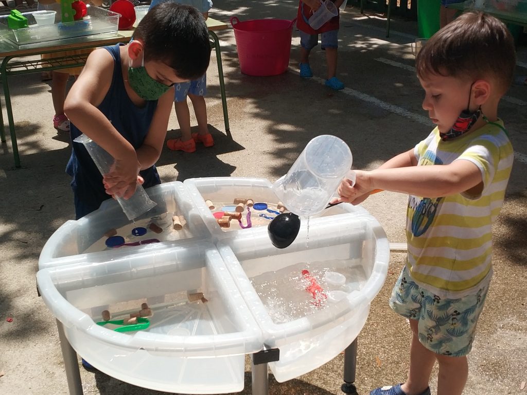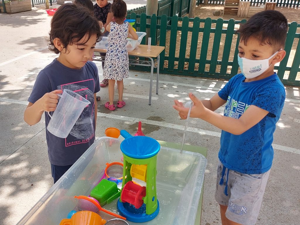 Els nens i nenes d’educació infantil hem gaudit d’una estona de jocs d’experimentació amb aigua, per veure si els objectes suren o no suren, transportar aigua d’un recipient a l´ altre…HA ESTAT UNA ESTONA MOLT DIVERTIDA!!