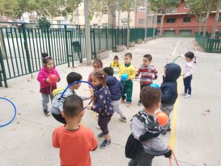 Els nens i nenes de P3 hem jugat al pati amb aros i pilotes. Ens hem divertit molt. FOTOS