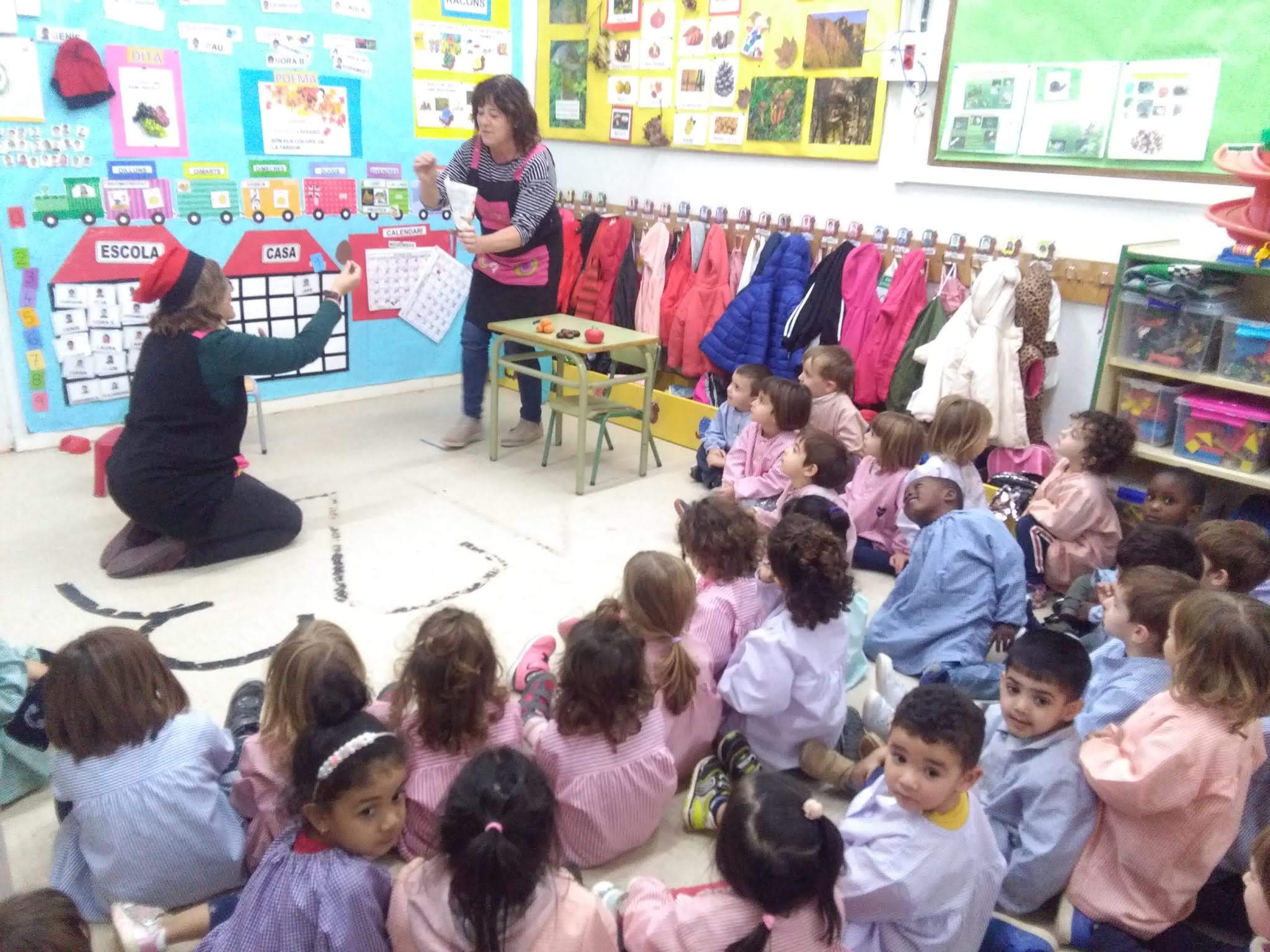 Els cargols, peixos i granotes hem gaudit de la representació del Pagès que li robaven les fruites de la tardor. Seguidament hem pogut fer un tastet d’aquestes fruites.