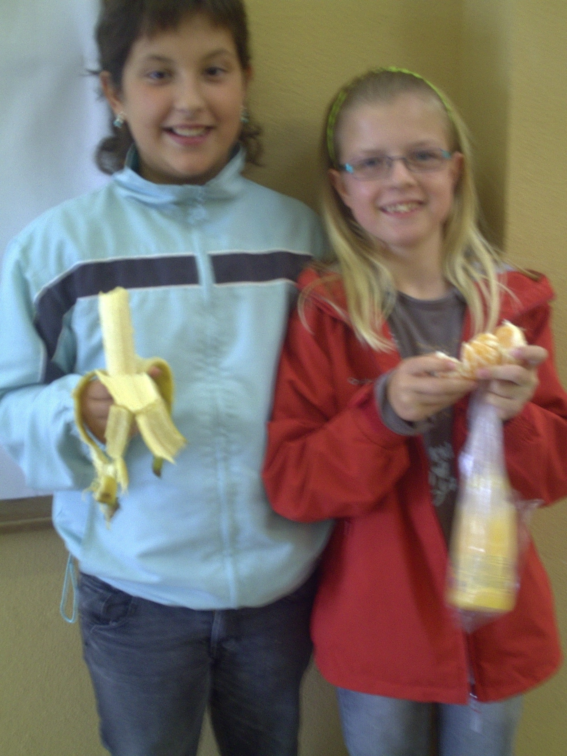 Felicitem especialment la classe de 4t A. Gairebé tots han portat alguna peça de fruita.