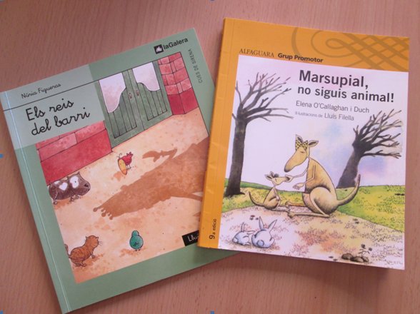 “Els reis del barri” i “Marsupial, no siguis animal”. Els dos ens han agradat però amb el segon ens ho hem passat més bé. El Boing i la Gura són uns cangurs i són els protagonistes del conte “Marsupial, no siguis animal”. El conte “Els reis del barri” ens explica les coses que fa una nena amb el seu avi.