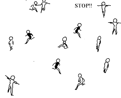 Descripció: Comencen perseguint un o dos nens. El perseguit pot evitar que el toquin si s’atura i crida “stop” abans no el toquin. Aquest ha de romandre quiet i amb les cames obertes fins que un altre company seu el toqui. Si un nen/a és atrapat/da passa a ser perseguidor/a.