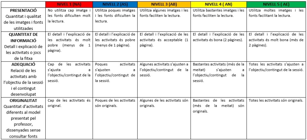 RÚBRICA DE FITXES JOCS O ACTIVITATS