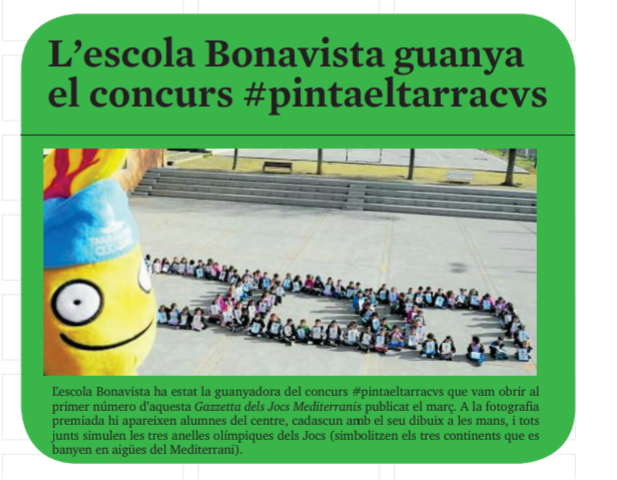 La publicació del guanyador es va fer mitjançant el “Magazzine Jocs del Mediterrani Tarragona 2018” del més d’Abril, on a continuació us adjuntem l’article.