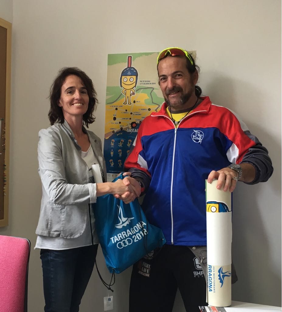 I la entrega va ser recollida pel mestre d’Educació Física de l’Escola Bonavista i va ser entregat per la Sra Bito responsable del Projecte Educatiu Tarragona 2018.