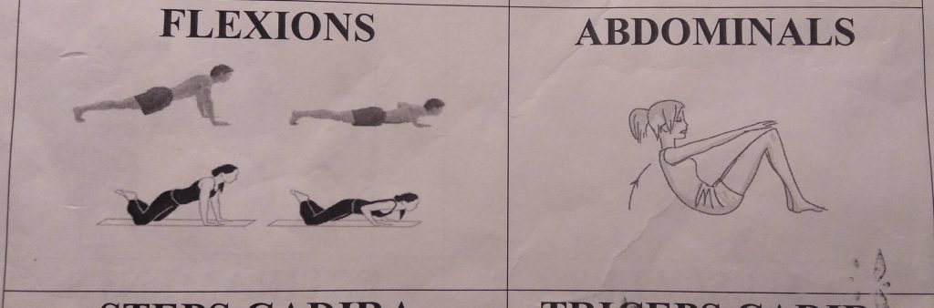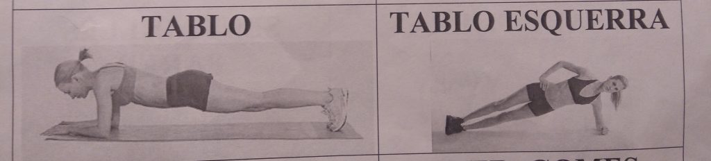 És un taula d’un total mínim de 12 exercicis, i per aquells que vulgui més “manteca” hi ha un plus d’unes quantes activitats més, on es recomanable realitzar al començament, si no estem acostumats a realitzar molta activitat, entre 2-3 de 10 repeticions de cada exercici, això durant les dues primeres setmanes. A partir de la 3ª setmana o si ja tens un hàbit creat d’entrenament, pots realitzar la taula cada dia i entre 4-5 series de 15-20 repeticions de cada exercici.