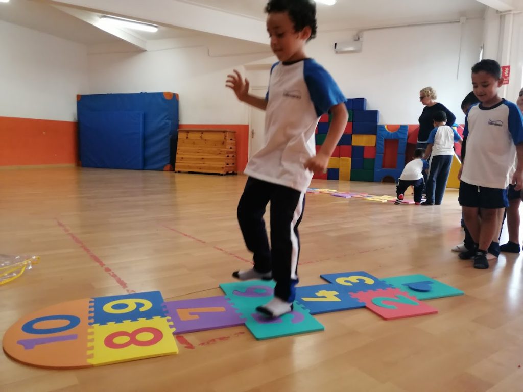 Avui a la classe de 1r hem estat jugant a la xerranca, treballant la coordinació de diferents tipus de salts. Abans de tot hem col.locat les peces de la xerranca, ens ha costat una mica però entre tots ho hem aconseguit.