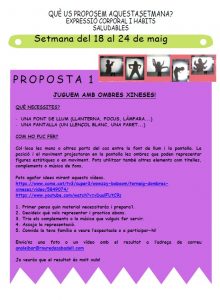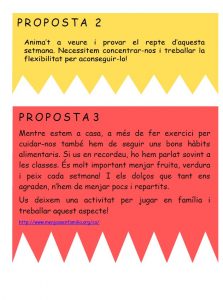 Aquesta setmana us presentem una nova proposta per fer educació física a casa (cliqueu la imatge per veure-la més gran).