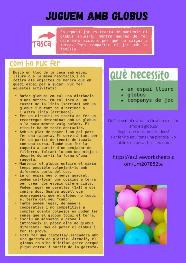 Hi trobareu també enllaçada una activitat per qui tingui ganes de proposar-nos algun joc amb globus!
