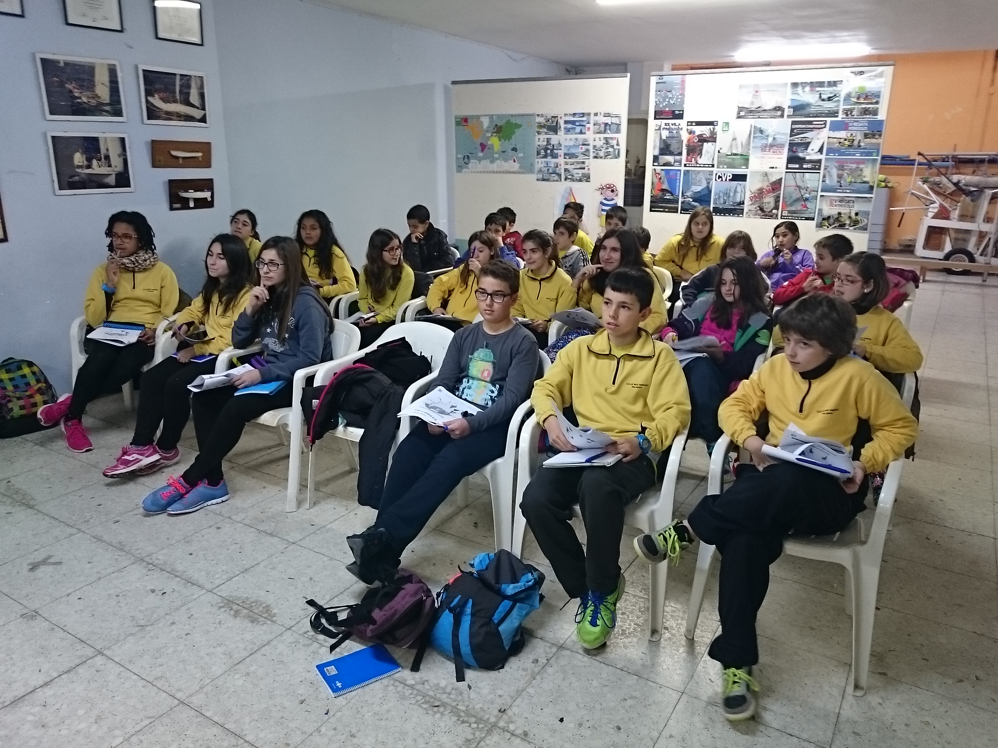 Les nostres presentacions són un xic llargues però val la pena escoltar-les, aprendreu moooolt sobre nusos mariners, vaixells de vela olímpica, regates a Palamós, seguretat al mar…