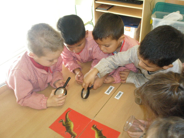 També hem començat a fer experiments relacionats amb els sentits. Una de les activitats que més ens ha agradat va ser anar al pati a buscar éssers vius i després observar-los a classe amb la lupa.