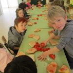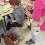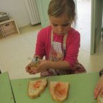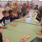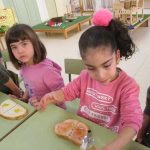Les nenes i els nens d’infantil ens hem preparat un bon pa amb tomàquet i botifarra d’ou. Un berenar d’allò més bo per agafar forces i jugar força estona al parc del cuc (Plaça Catalunya).