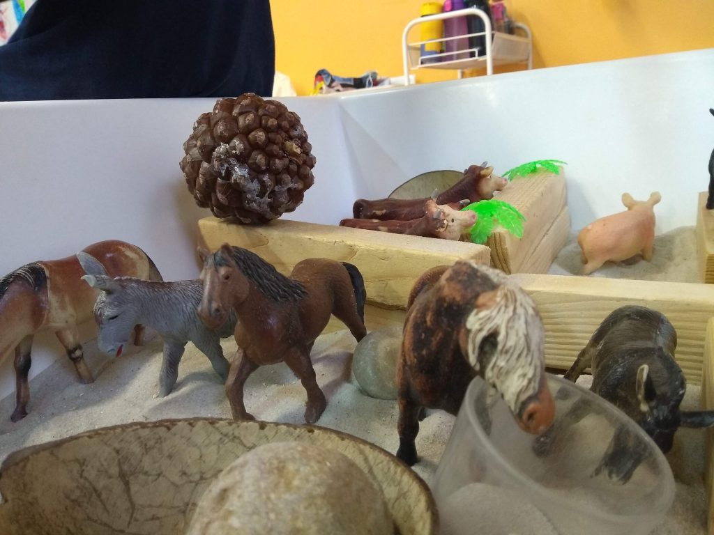 Avui un grup d’infants han decidit iniciar un joc molt interessant, posant sentit i significat a cada objecte, han anat elaborant un joc simbòlic ric i ple de significat, l’adult que acompanya ha pogut captar sense interferir en l’acció dels infants aquesta experiència tan rica.