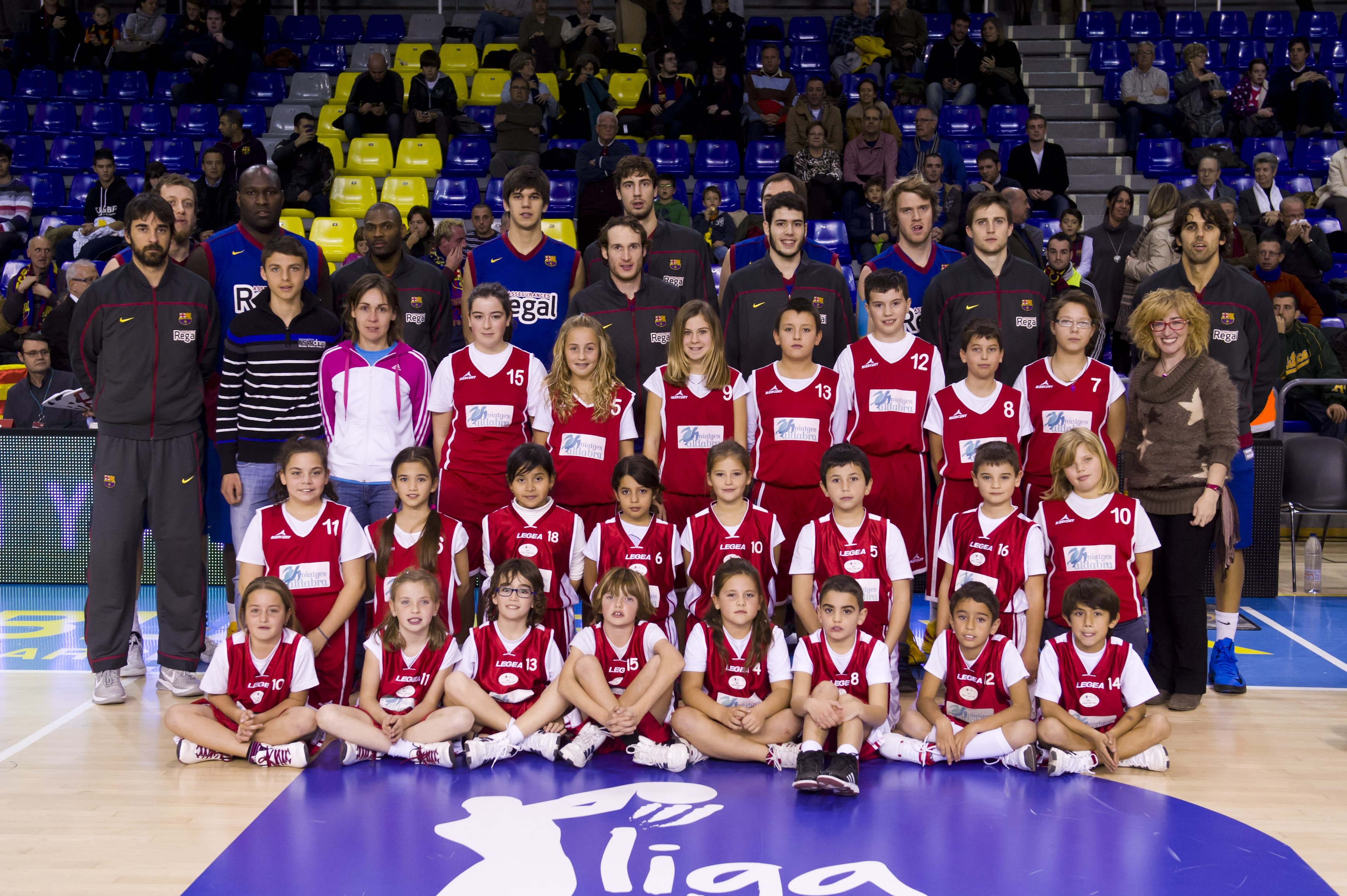 El 3 de desembre vàrem anar a veure un partit del Barça-Regal de bàsquet al palau blaugrana. Quan vam arribar , al pàrquing de cotxes van començar a arribar alguns jugadors i vam córrer a demanar autògrafs. Després, ens esperava una guia , ens va acompanyar a peu de pista per veure d’aprop com escalfaven i finalment: QUINA ALEGRIA! ens vam fer una foto amb els jugadors!!!!! quina passada i quin record. Després ens vam quedar a les grades amb les nostres famílies per veure un partit contra el Cajasol.