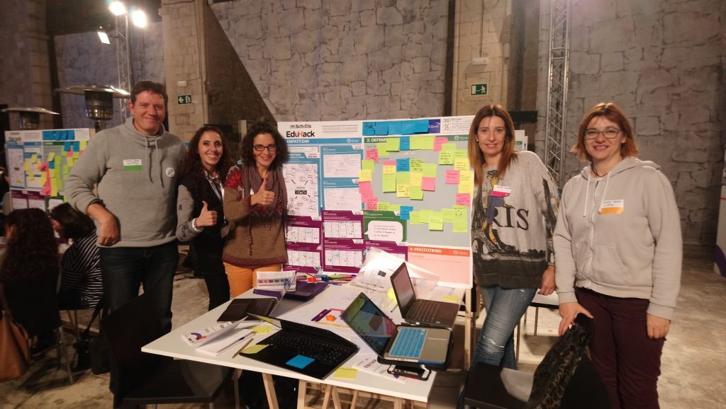 Som la Lídia Monforte, en Joan Pellicer, la Mònica Bruñol, l’Àngels Camarena, la Mireia Colon i la Mireia Dosil, professors i mestres de diferents centres. El nostre projecte s’anomena Comunitec: volem utilitzar la tecnologia per a fer més comunitat i sentir-nos més nostre el centre.