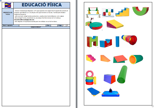 CICLE INICIAL (1r i 2n) .Aquesta setmana us proposo una activitat més plàstica. A tots ens encanta fer circuïts al gimnàs de l’escola, per això us proposo dissenyar el vostre circuït, aquell que us agradaria fer la propera vegada que ens retrobem al gimnàs!
