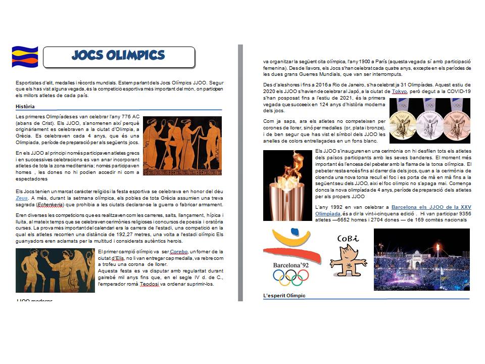 CICLE SUPERIOR (5è i 6è): Us he preparat un breu recull d’informació sobre els JJOO, Tasca JJOO CS cal que el llegiu amb atenció i que després contesteu amb V (verdader) o F (fals) aquests qüestionari online liveworksheet qüestionari CS online . En acabar clic a TERMINADO – ENVIAR RESPUESTAS A MI PROFESOR, fent servir la meva adreça ismaefmediterrania@gmail.com. Podreu veure el resultat de la vostra feina i jo rebré una notificació automàtica. Per tant no és necessari que m’envieu res.