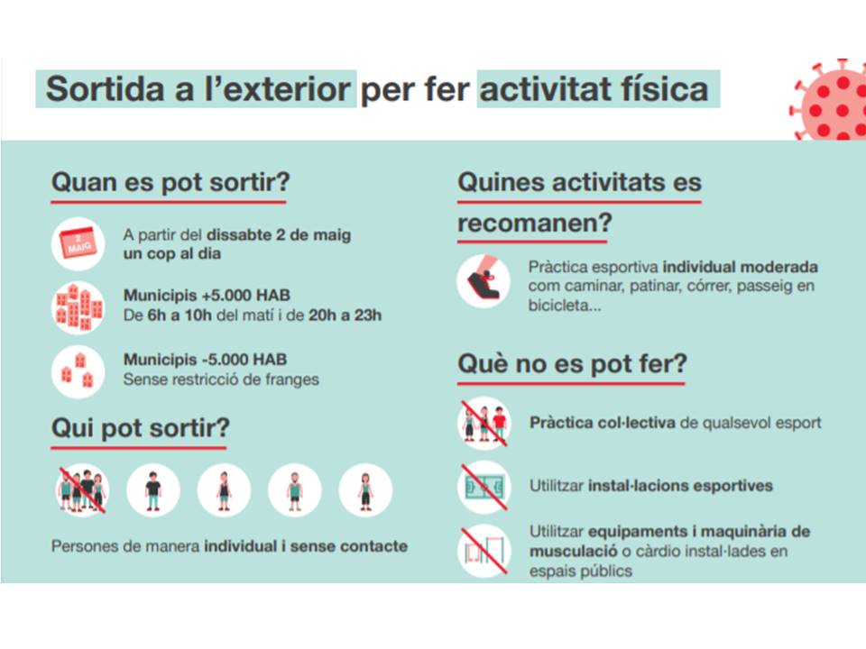 Us adjunto la infografia que ha realitzat la Secretaria General de l’Esport i Activitta Física en relació sobre la sortida a l’exterior per fer activitat física.