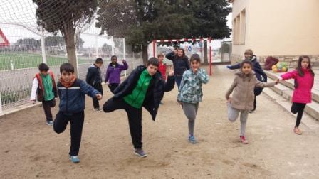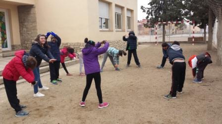 La primera part de la sessió d’Educació Física és l’escalfament, dins del qual fem alguns estiraments. Aquesta part de la sessió és molt important per escalfar i adaptar els músculs a les activitats esportives que es faran després. Així doncs, preparem el cos i prevenim lesions.