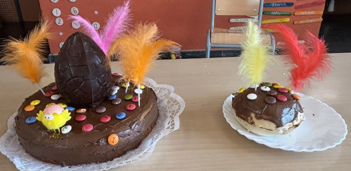 Els nens i nenes d’educació infantil hem fet la Mona de Pasqua a la classe. Hem sucat el pa de pessic amb melmelada i crema de cacau i ho hem decorat amb plomes i pollets . Per la tarda hem anat al pati dels grans i ens l’hem menjat tota, ens ha quedat boníssima !!!