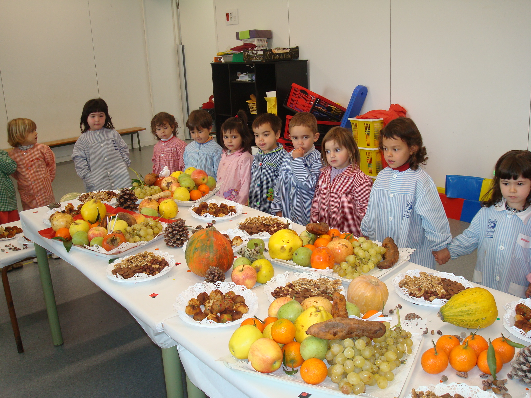 Aquest trimestre hem fet la nostra primera festa, LA CASTANYADA. Al llarg de la setmana hem estat mirant fruits i fruites de la tardor, que les famílies, vam portar de casa. Moltes gràcies! Hem pintat fulles per decorar el passadís, hem estampat amb fruites de la tardor, també vam surtir al pati per recollir fulles seques.