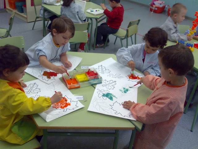 Ens ajudem uns als altres. Pintem les fulles amb els colors de la tardor.