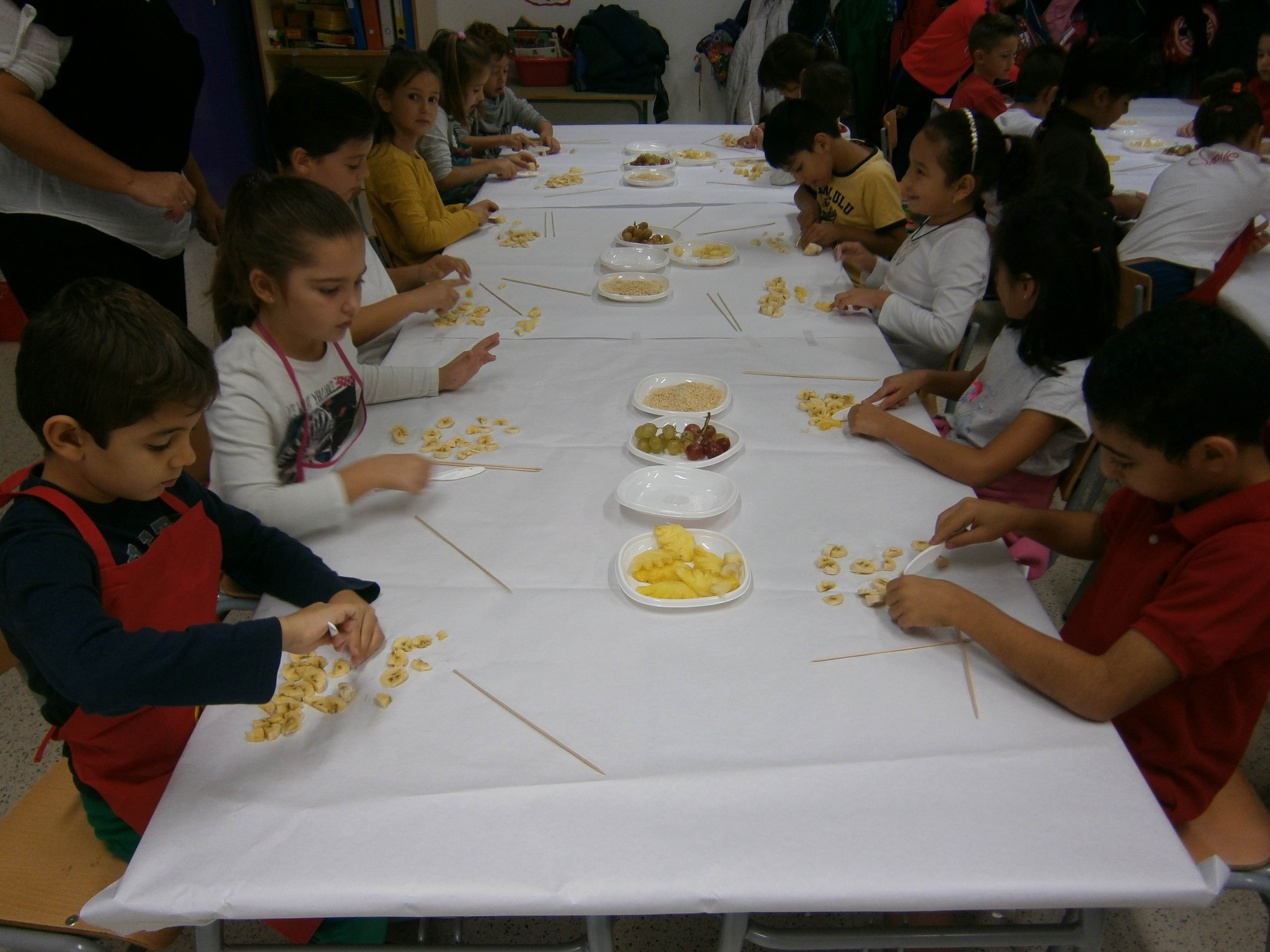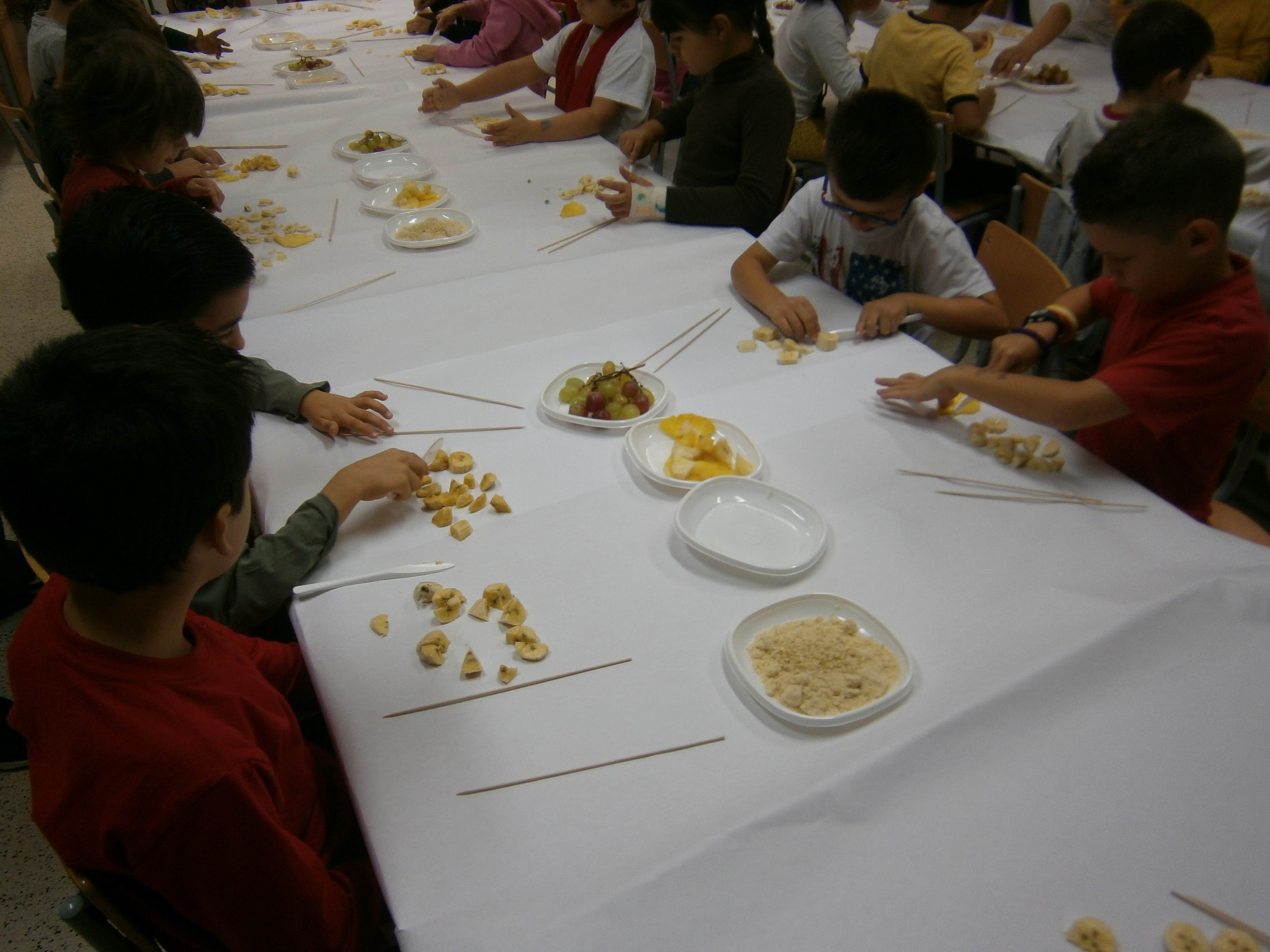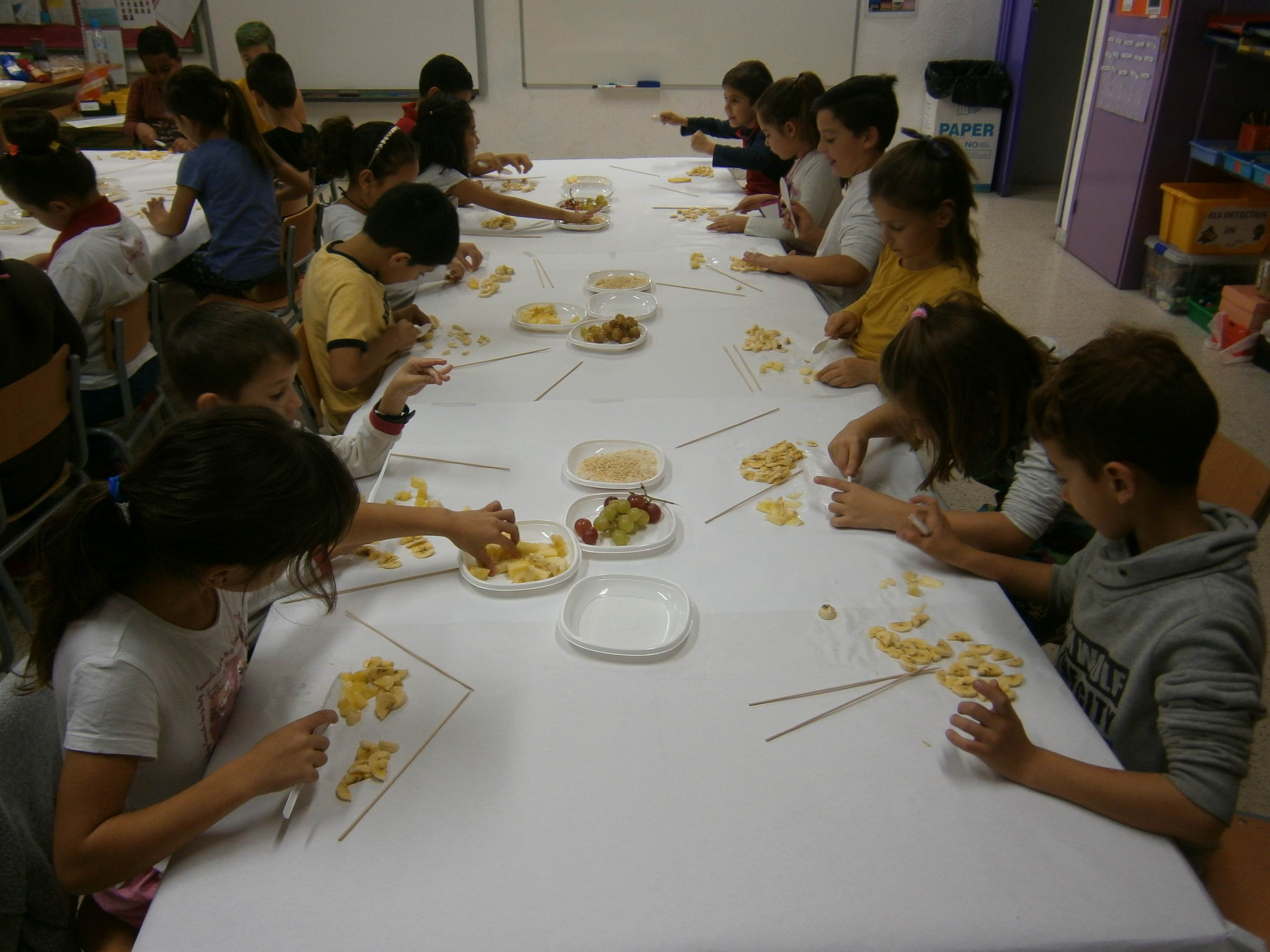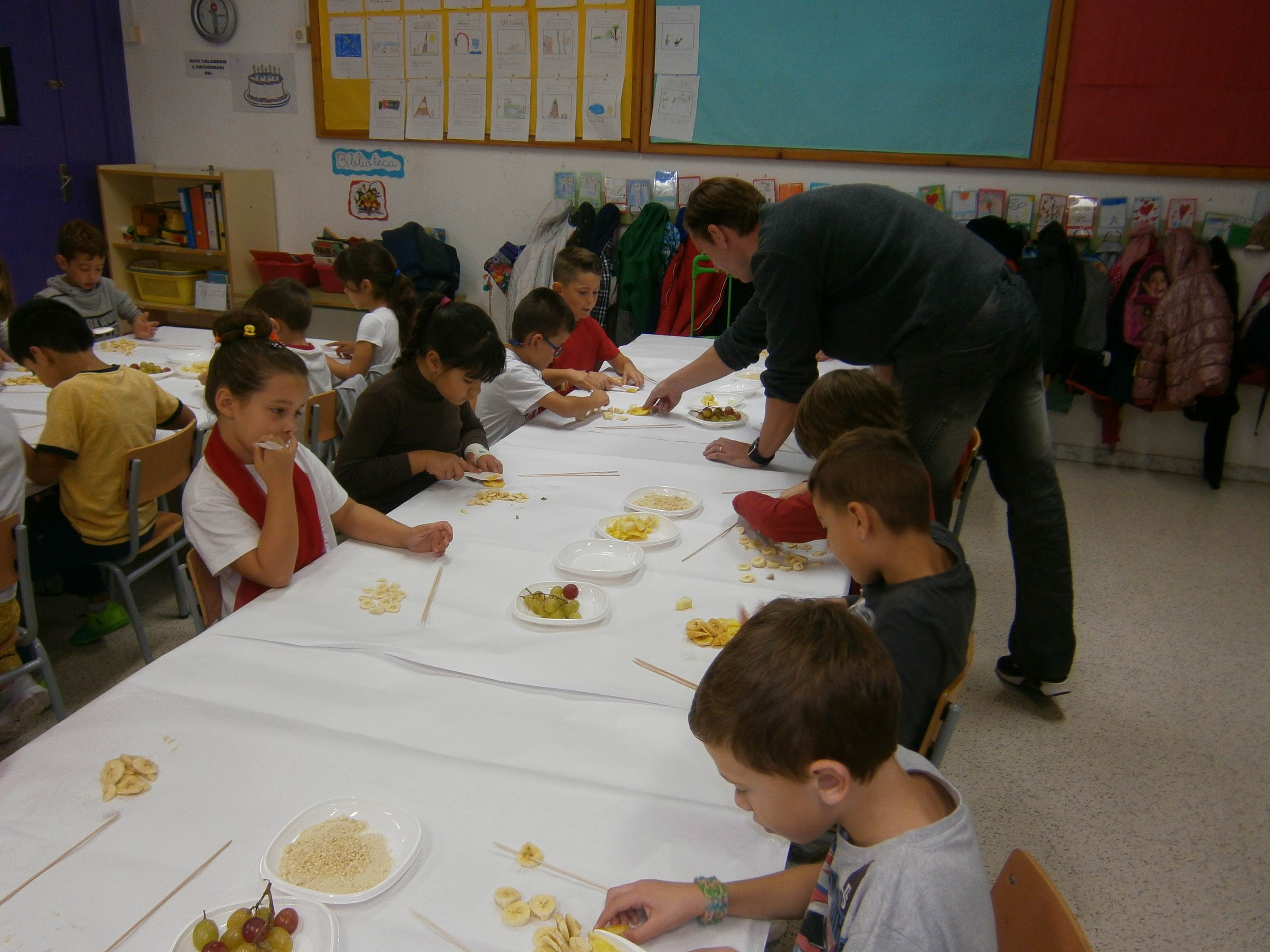 El dia de la Castanyada vam fer Broquetes de fruita a la classe. Ens van ajudar algunes famílies.