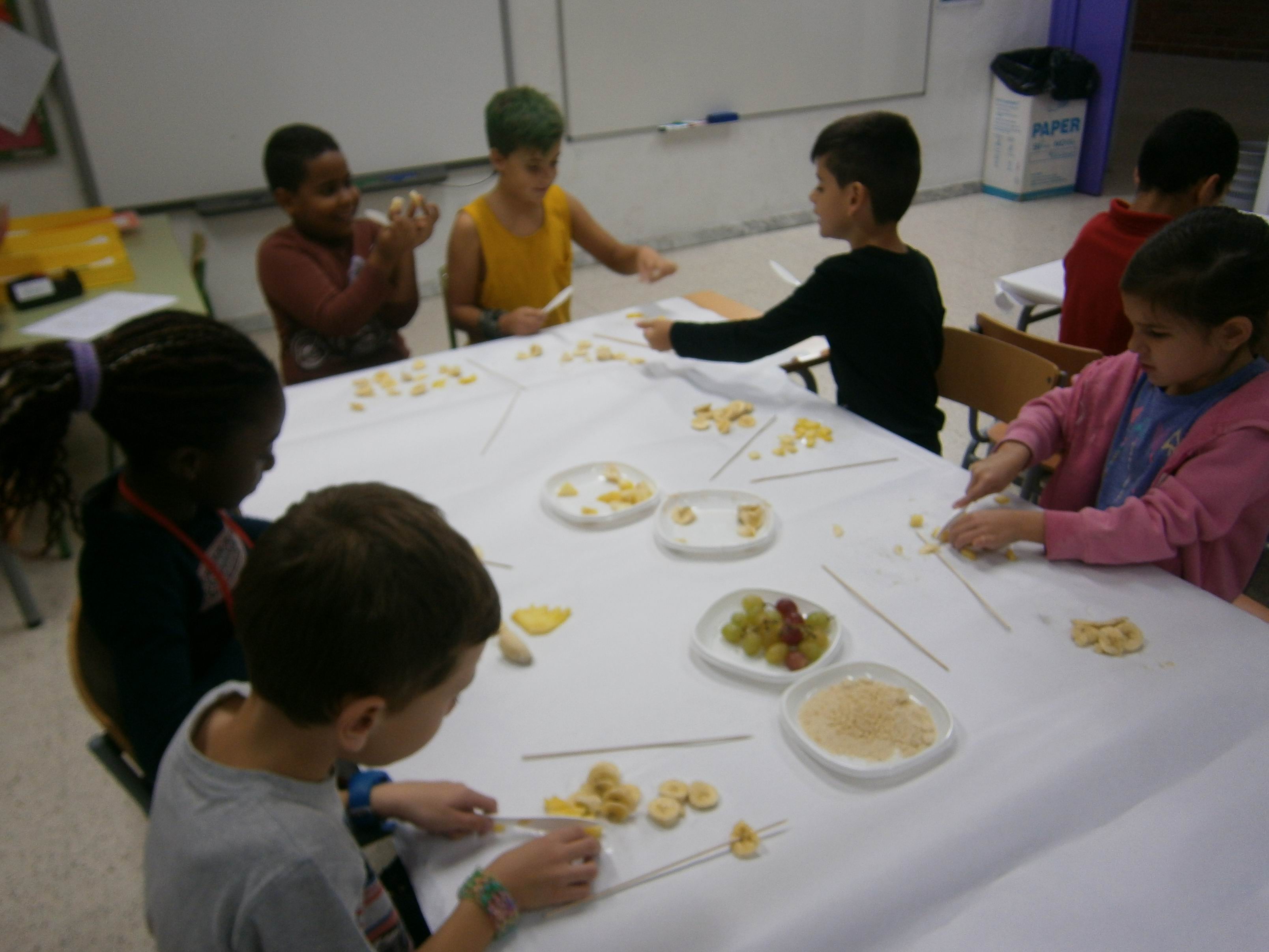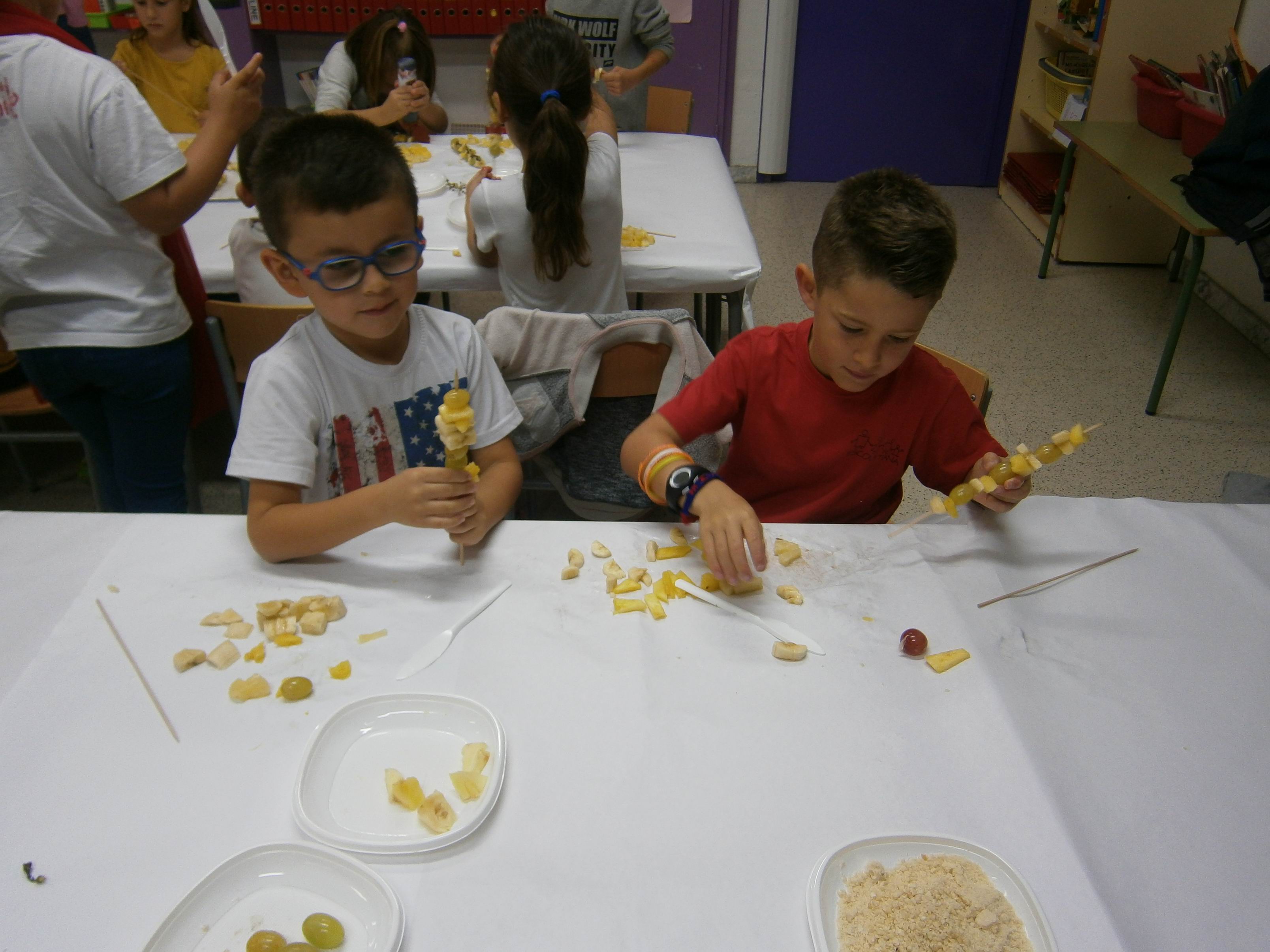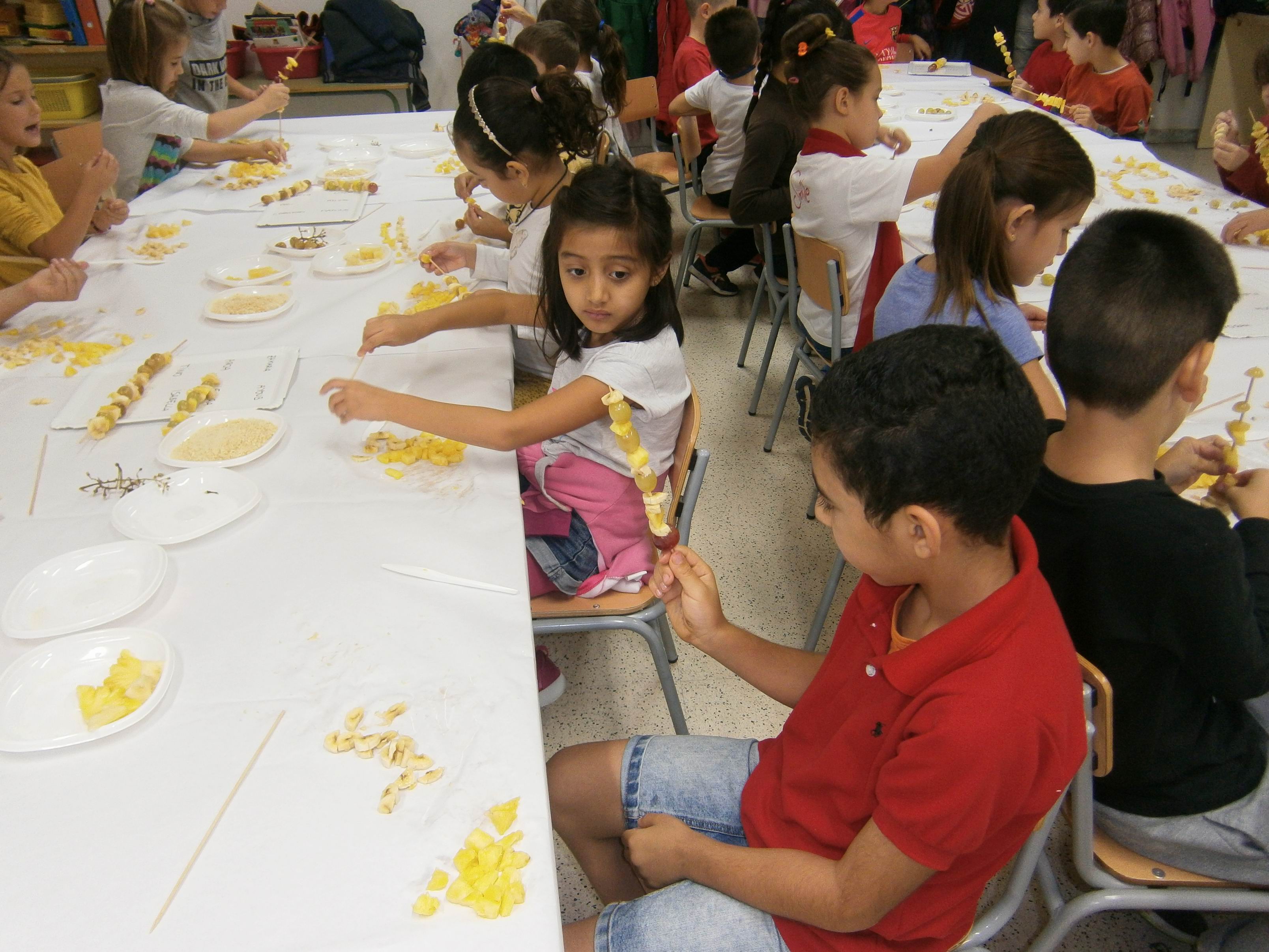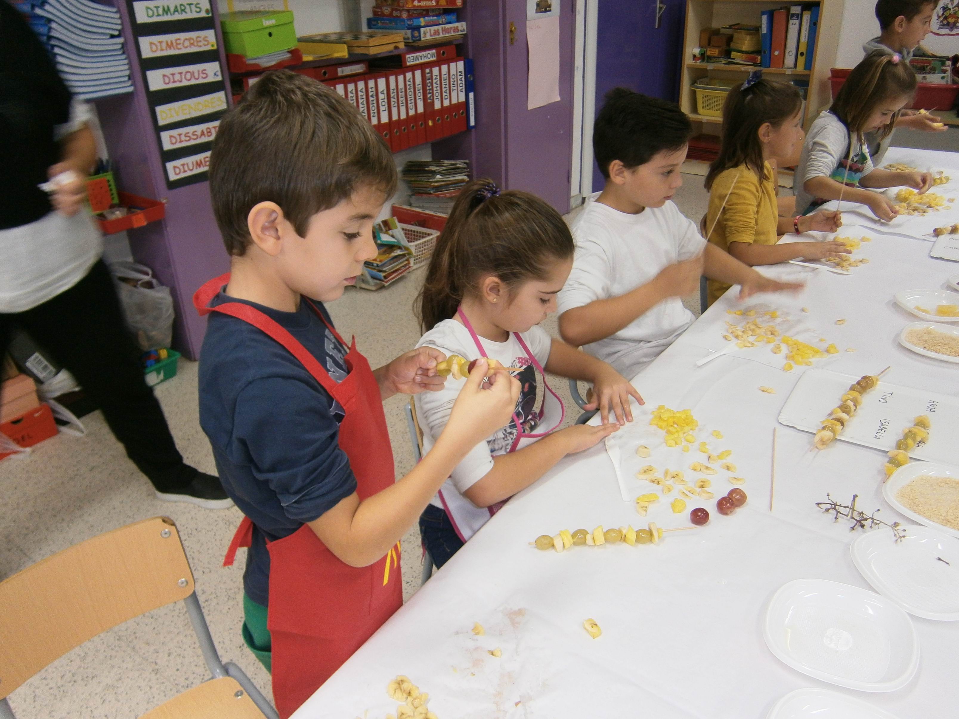 El dia de la Castanyada vam fer Broquetes de fruita a la classe. Ens van ajudar algunes famílies.