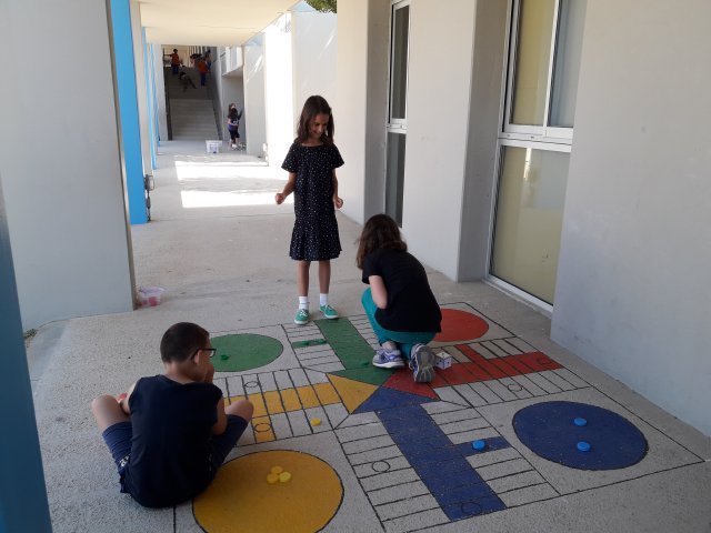 Els nens i les nenes gaudeixen molt durant l’estona d’esbarjo de tots els jocs de pati.