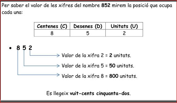 Practica a casa amb nombres de 3 xifres, si et cal utilitza material que tinguis per casa, taps de llet, cigrons, fitxes de jocs…