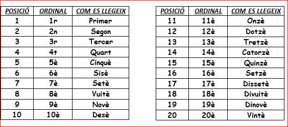 Recordeu que farem dues proves. Una amb els continguts: descomposició de nombres, valor de les xifres segons la seva posició, escriptura de nombres, línies paral·leles i línies secants i altra dels nombres ordinals fins el 20 (les proves les farem en dies diferents segons teniu anotat a la vostra agenda).